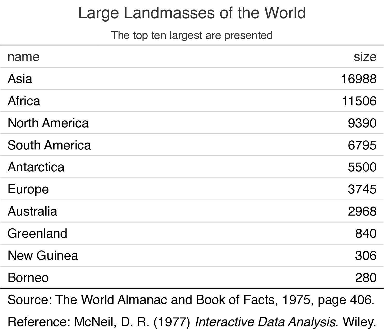 Let’s look at 6 HTML tables using a variety of CSS properties also supported by Typst in Quarto.